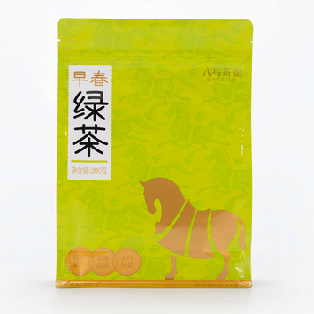 清新自然的嫩绿色外包装,热封口干燥密封,保证茶叶香醇。设计灵感源自唐诗“不知细叶谁裁出,二月春风似剪刀”,采用非遗剪纸表现方式,描绘马踏飞燕、草长莺飞的初春景象;背面详细介绍茶叶产地、品种及冲泡方式,让消费者全方位了解产品,放心品茗。